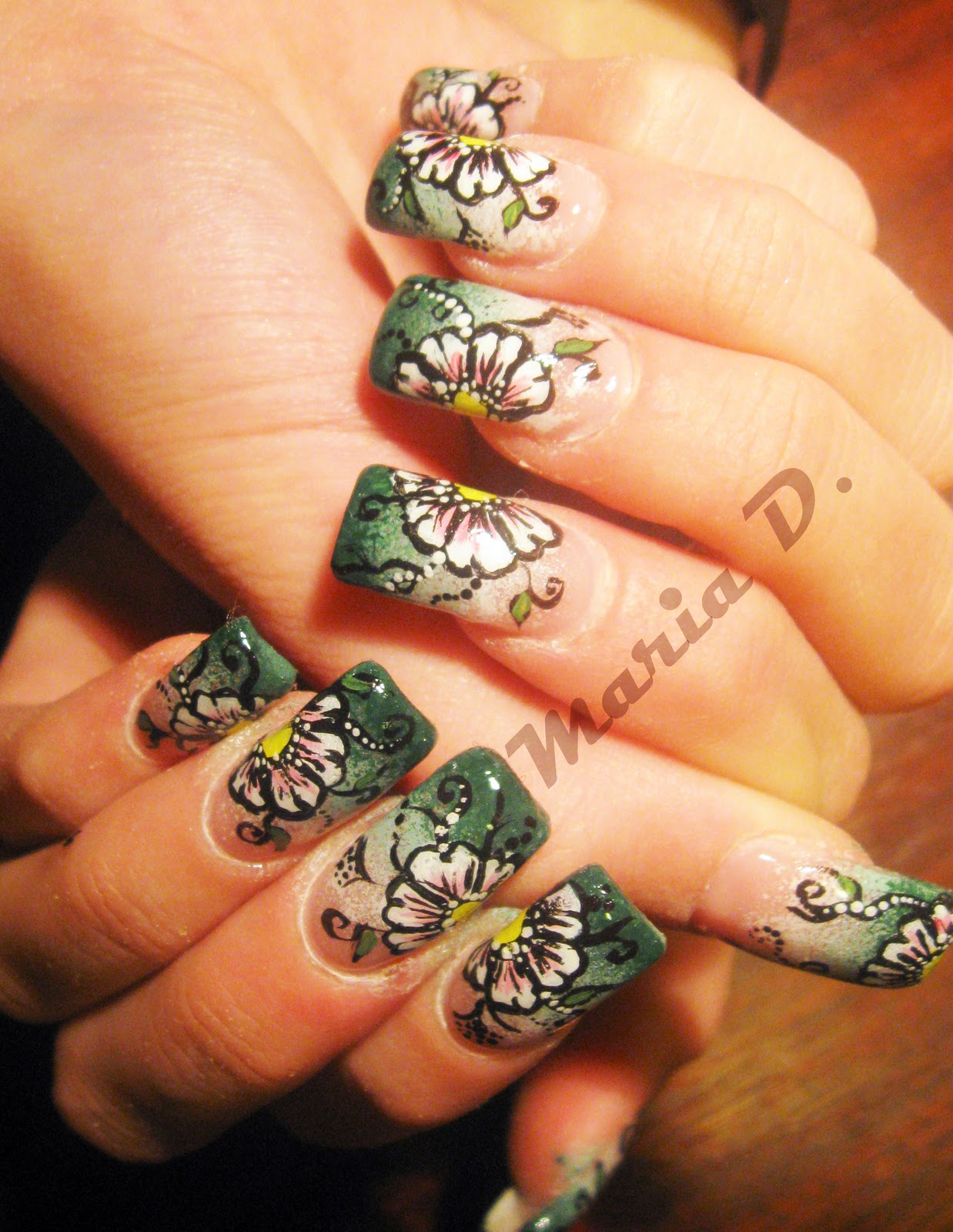 Pasul 10 : La degetele mari creeati accente peste elementele in-lay din acryl si pictati si cateva alge.
